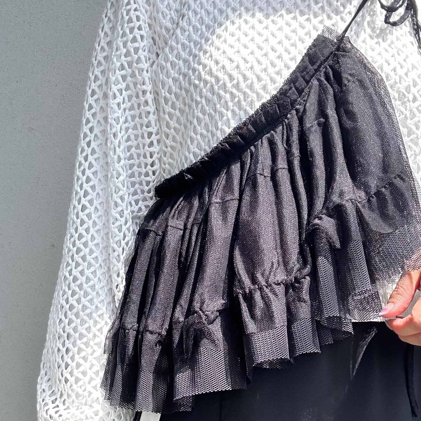 ふんわりとしたチュール素材に、2段のフリルを重ねたメッシュベルト。