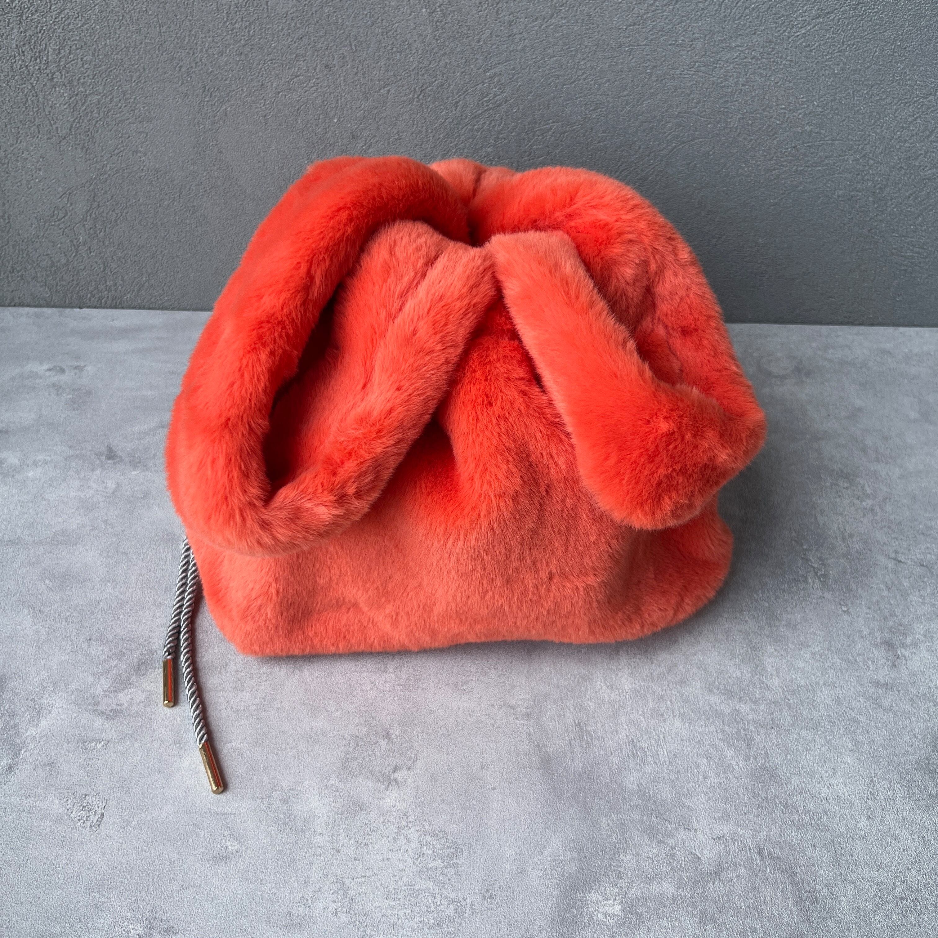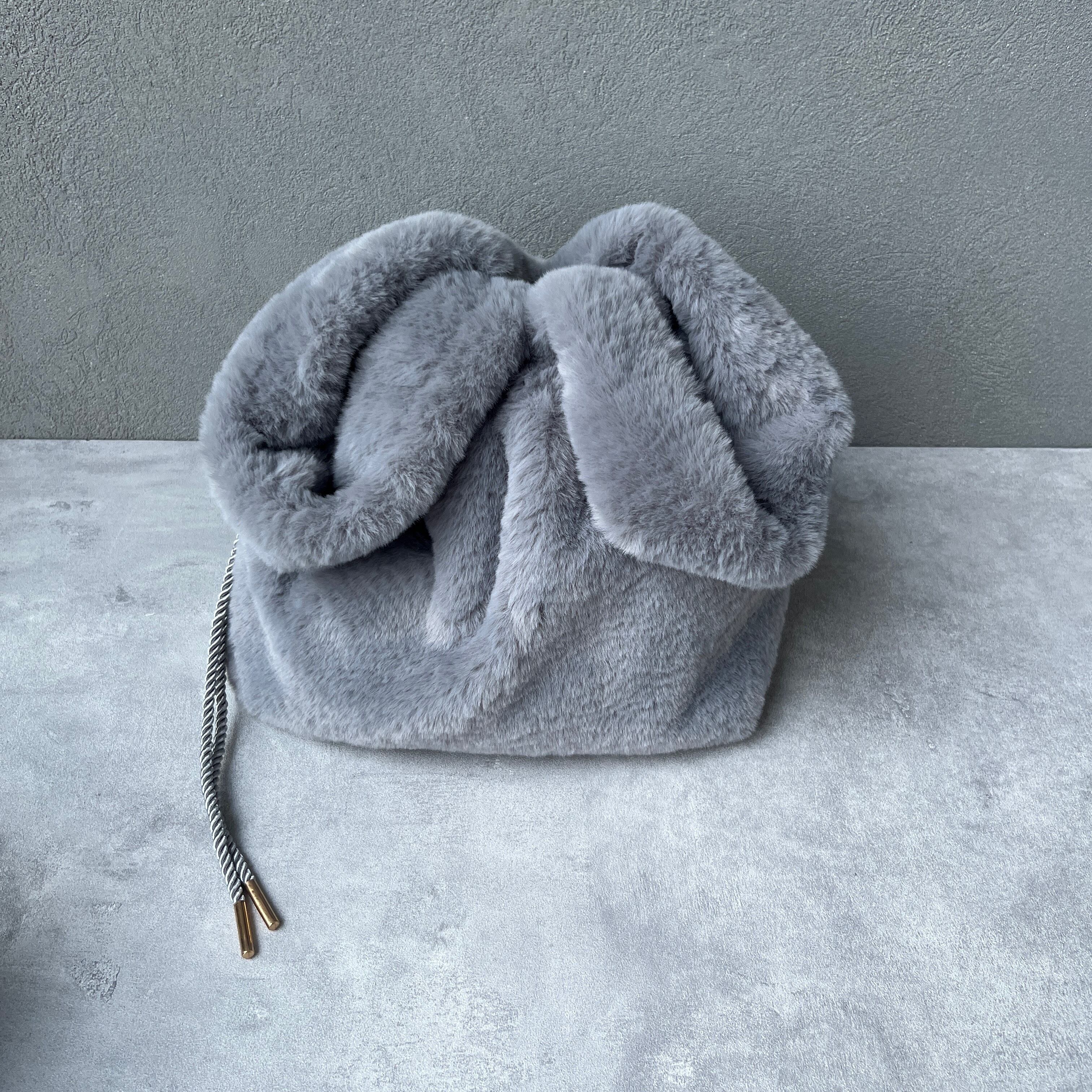 ウサギの耳のような、ふわふわの持ち手がついたファーバッグ。