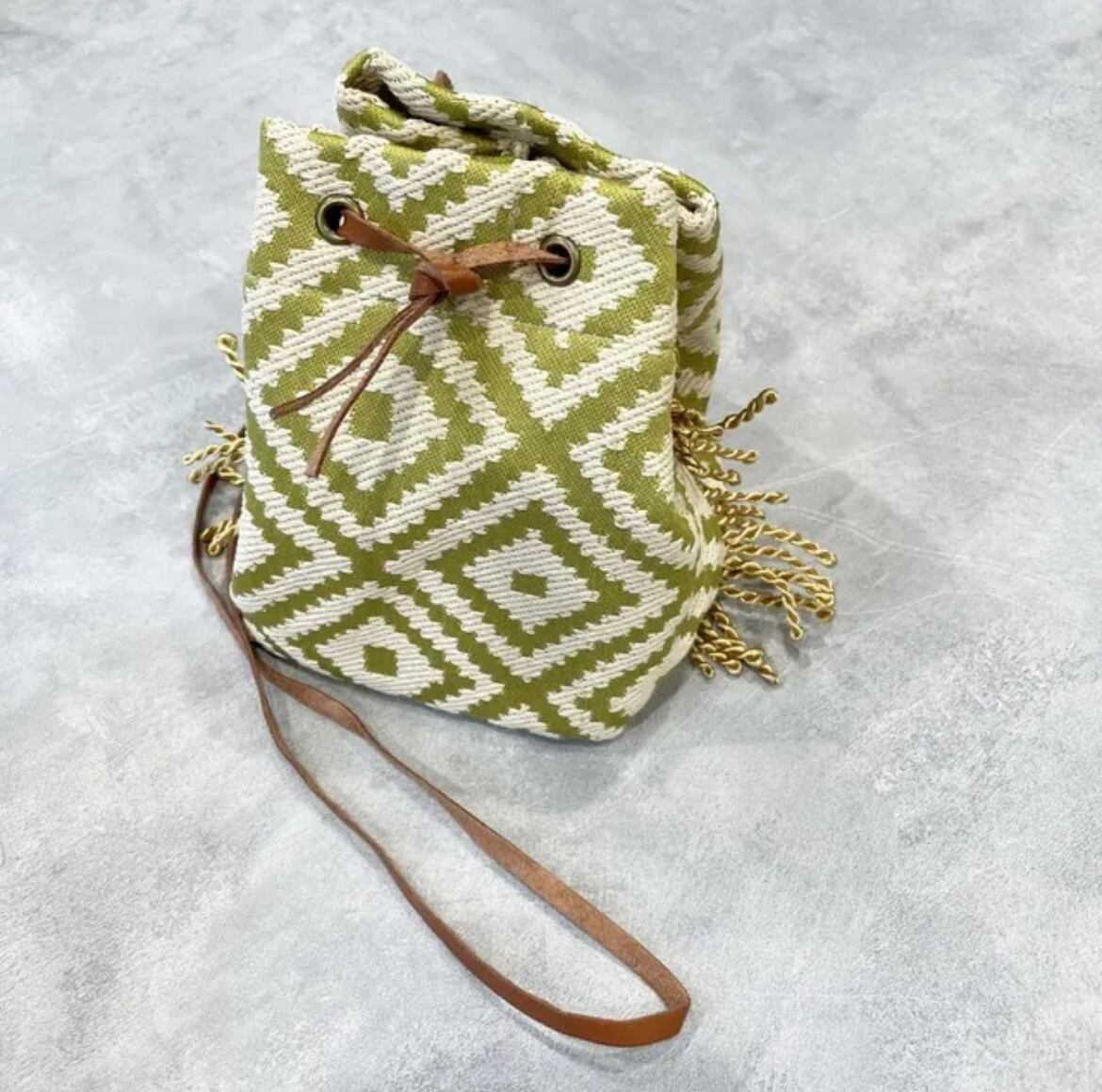 個性的な織り柄とバッグサイドについたフリンジがポイント。