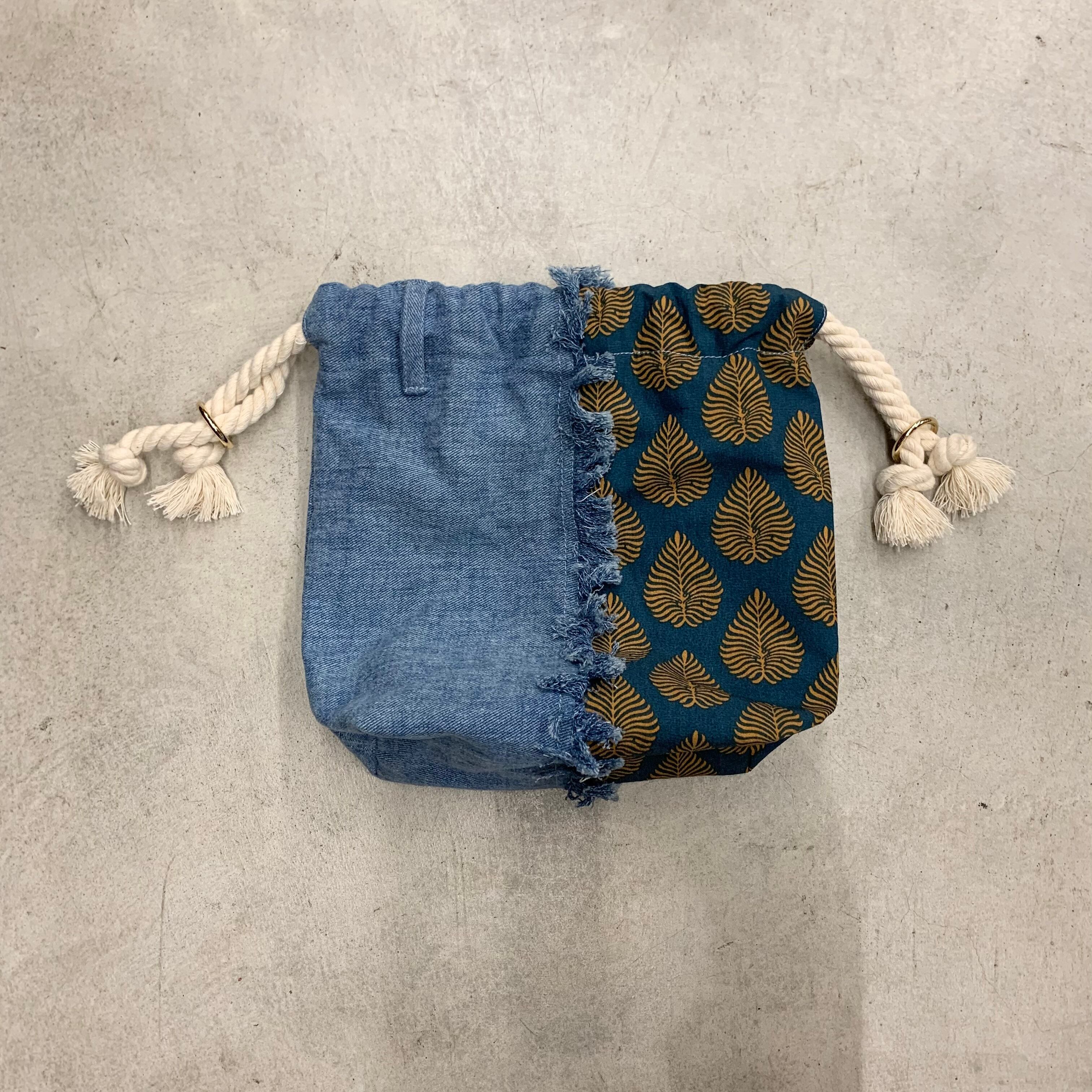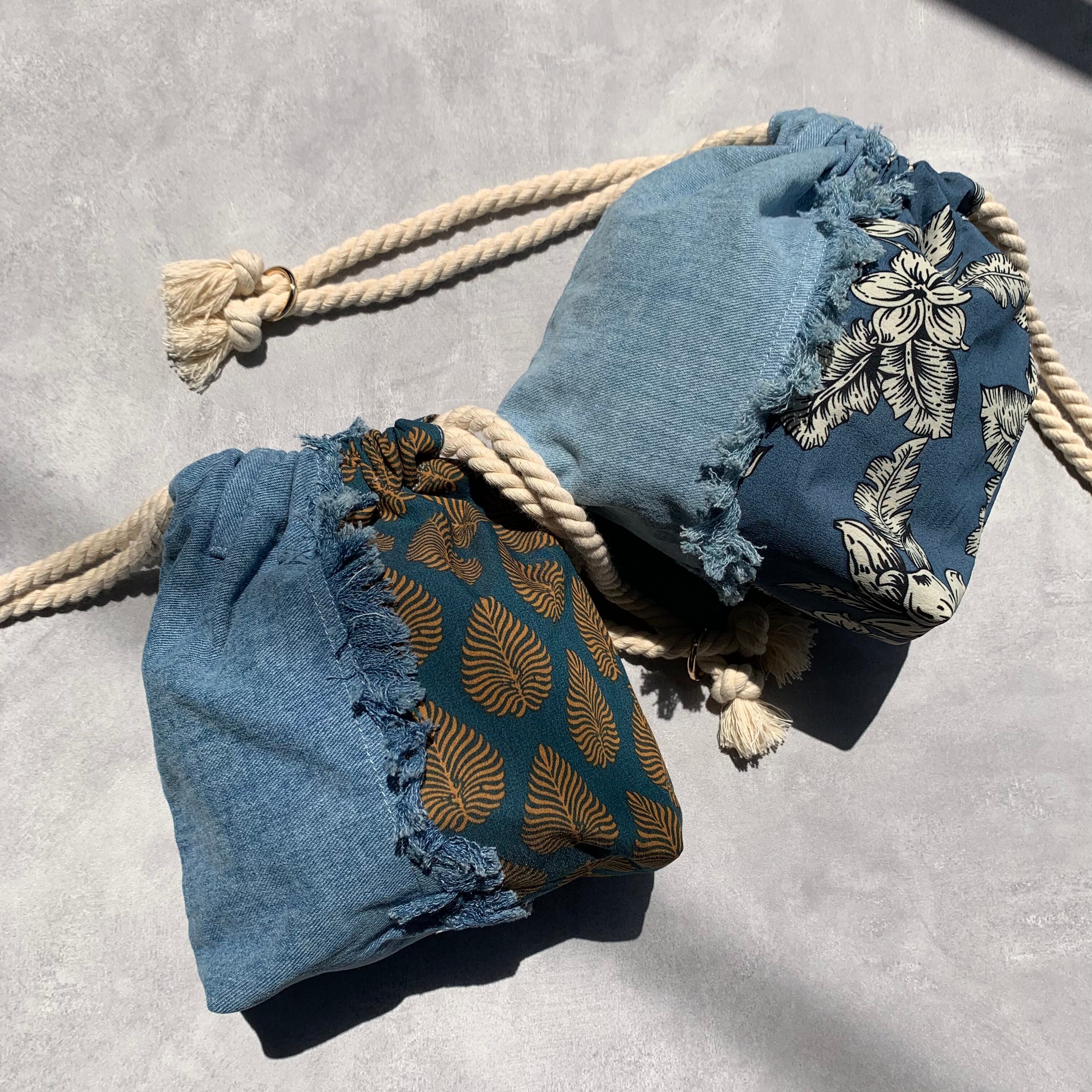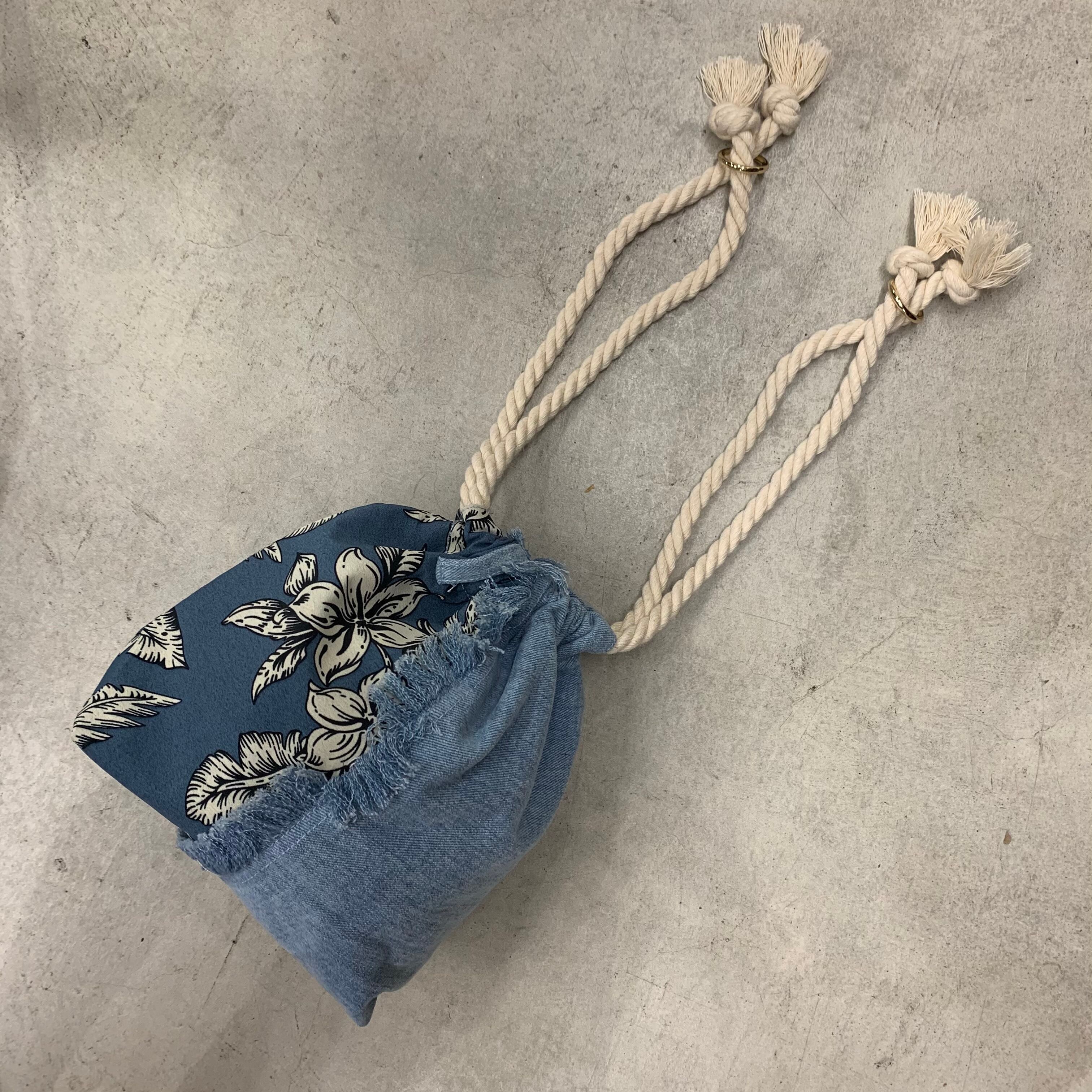今年マストなフリンジがあしらわれたデニム生地がカジュアルな巾着バッグ。