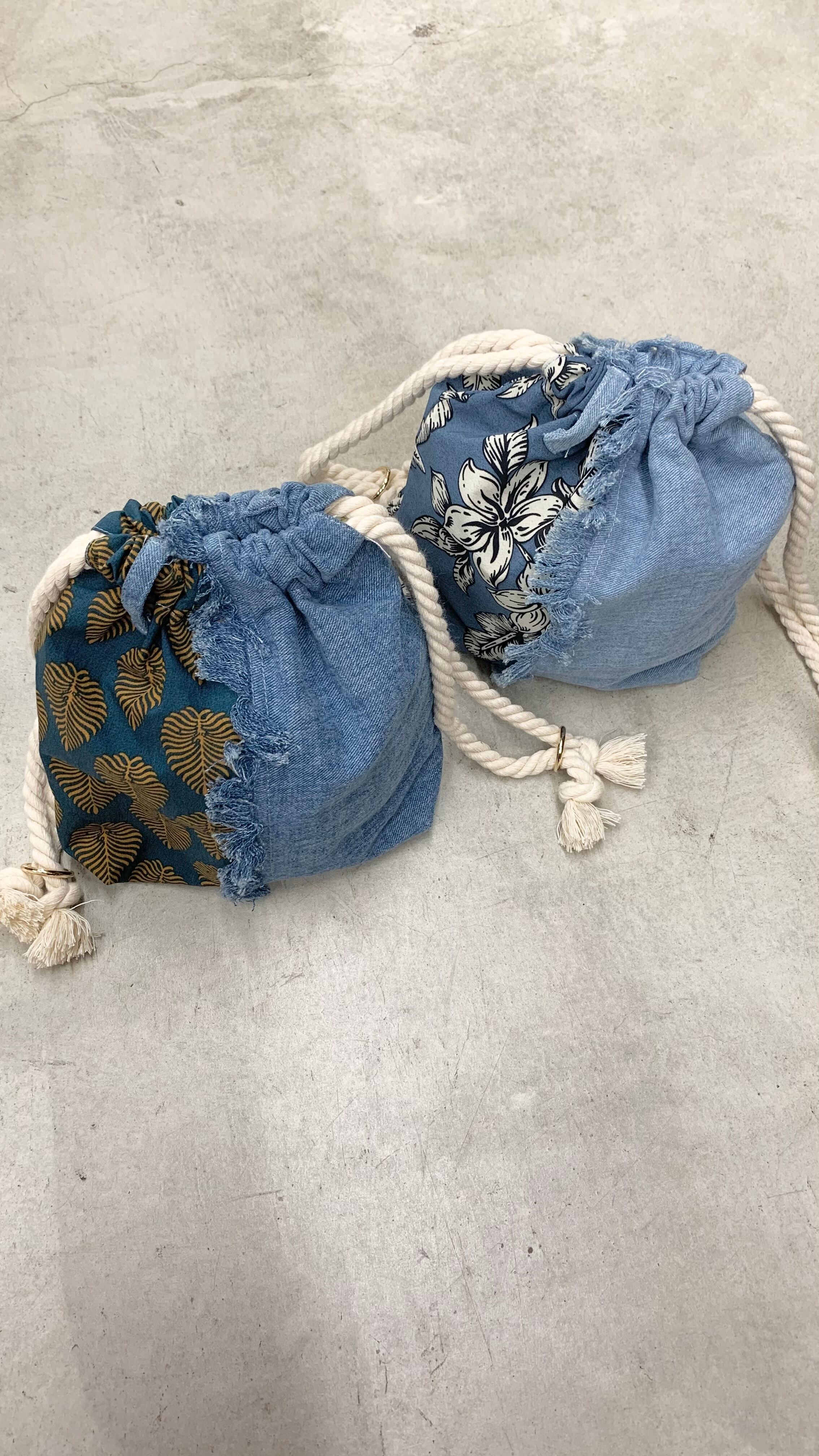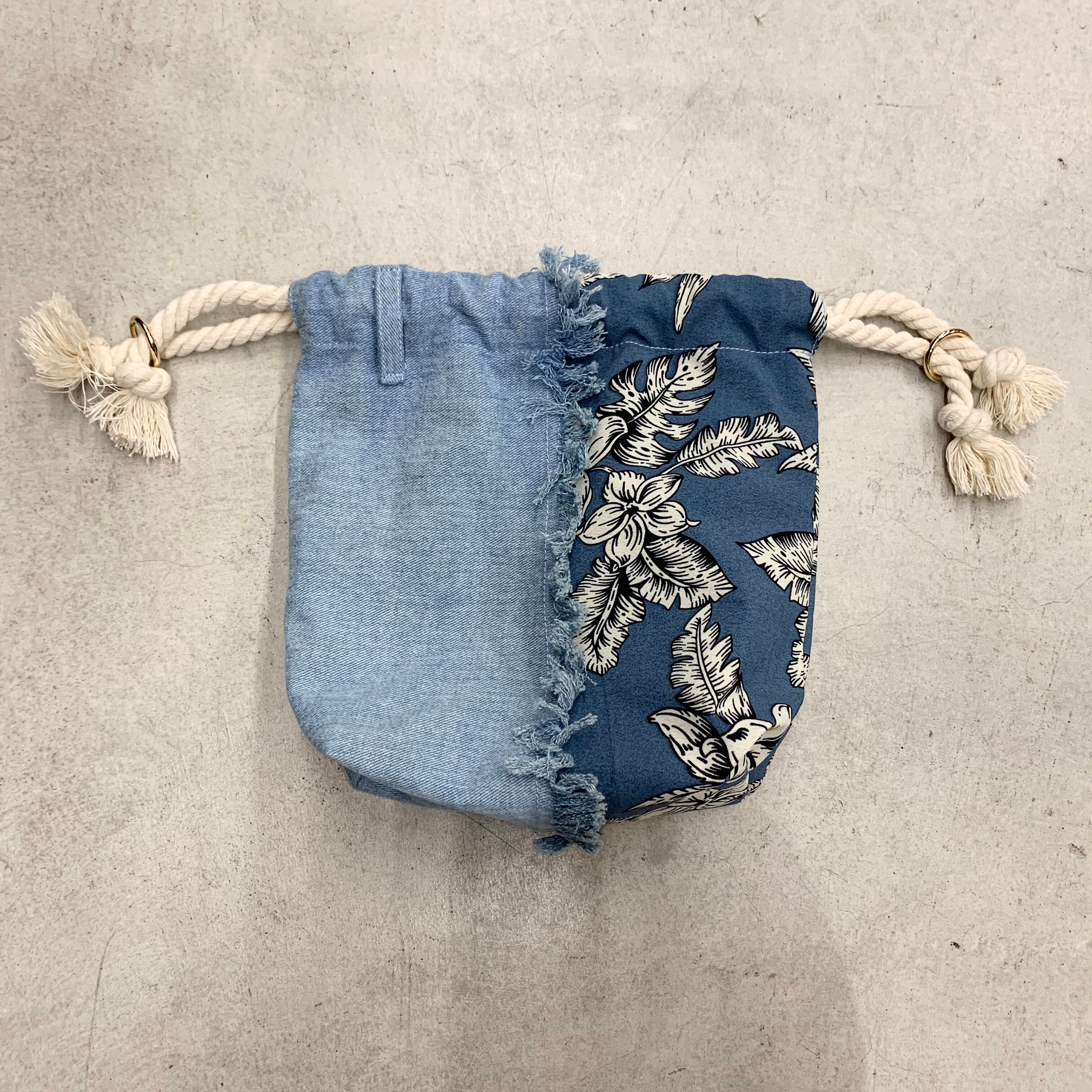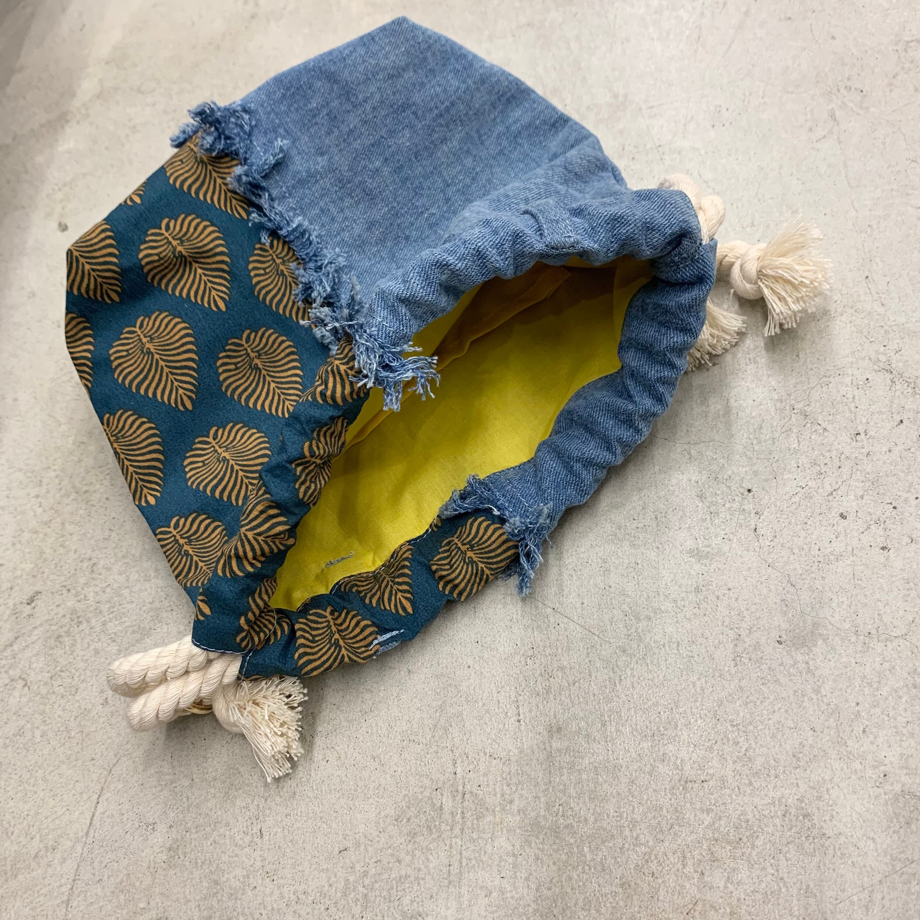 今年マストなフリンジがあしらわれたデニム生地がカジュアルな巾着バッグ。