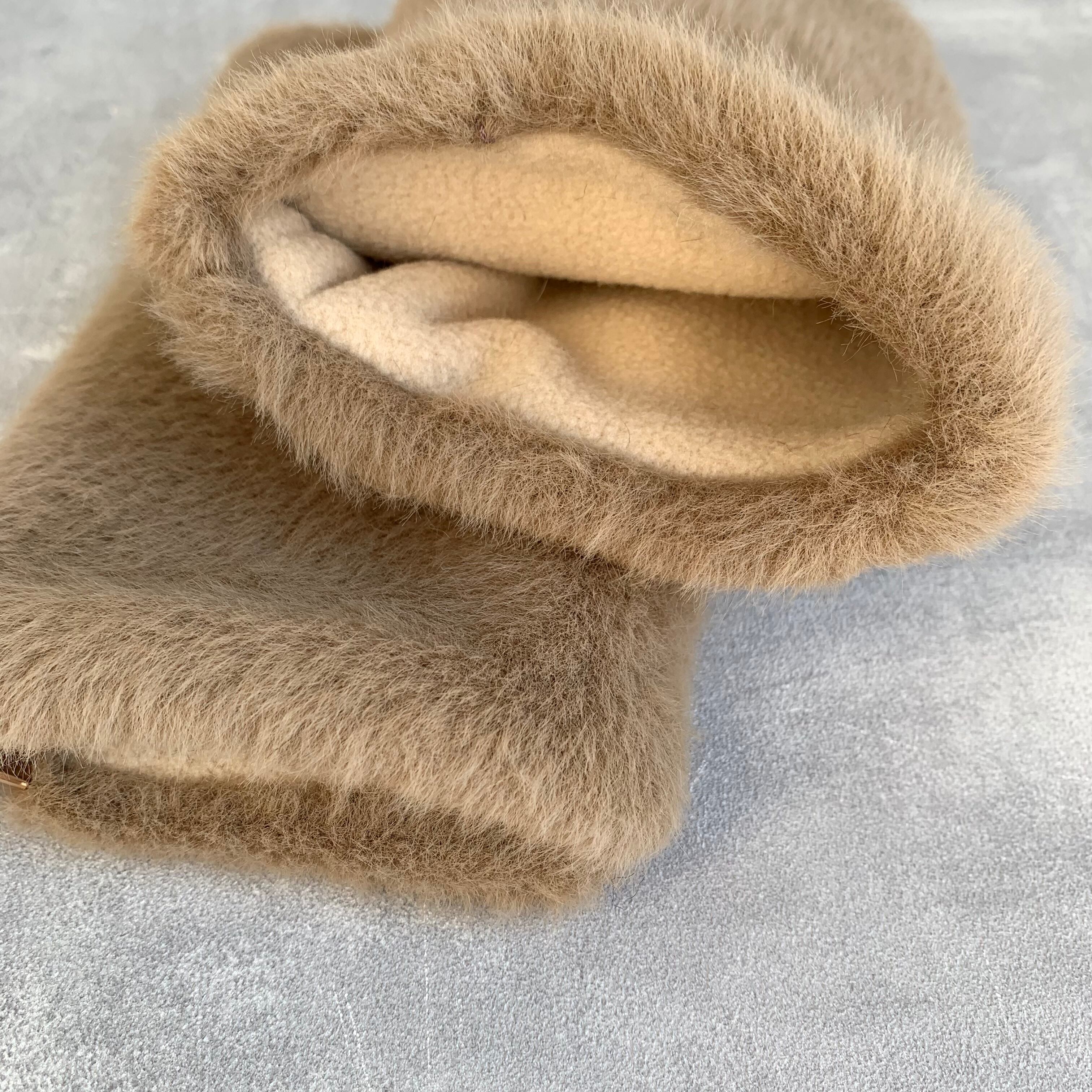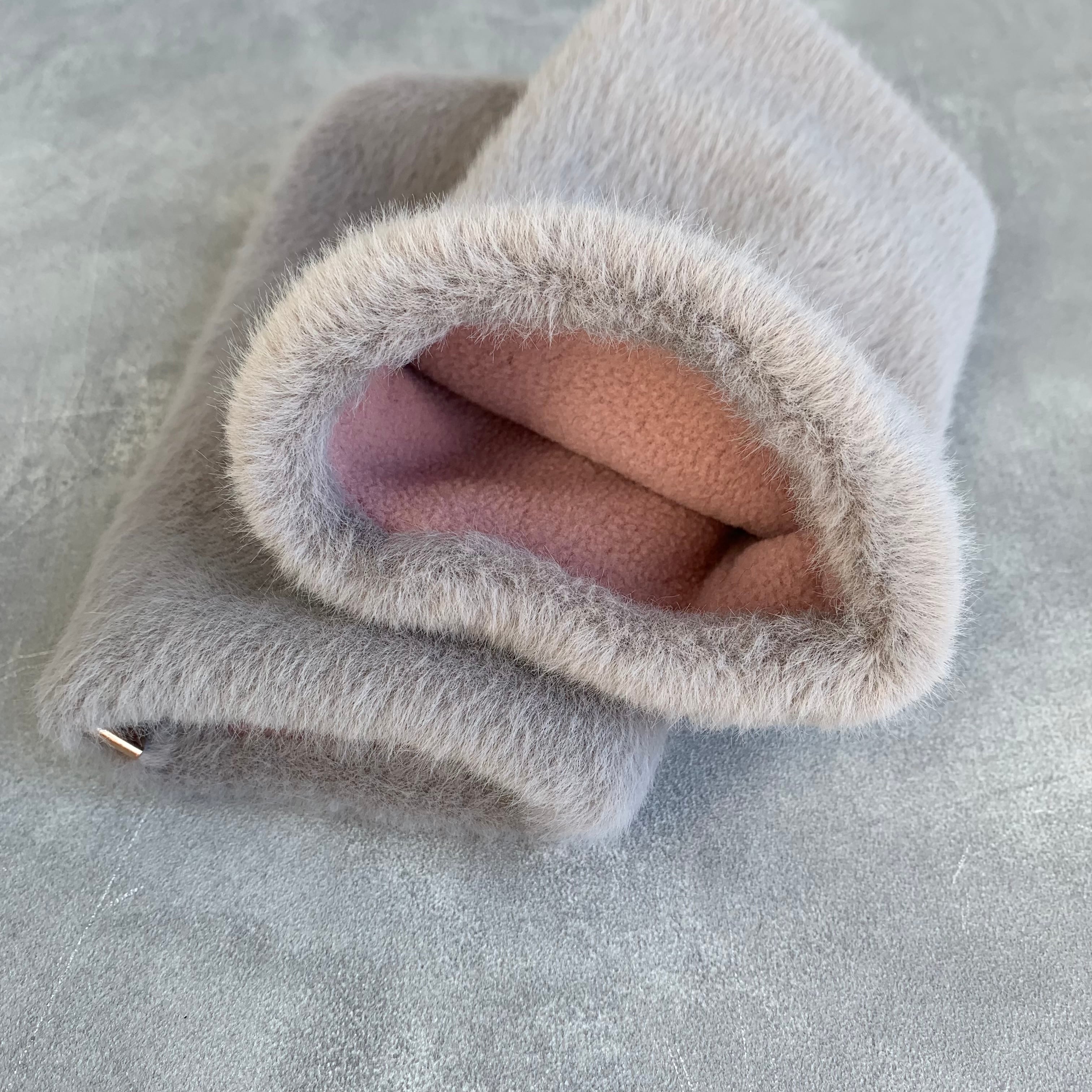 くすみカラーが可愛いふわふわなハンドウォーマー◎