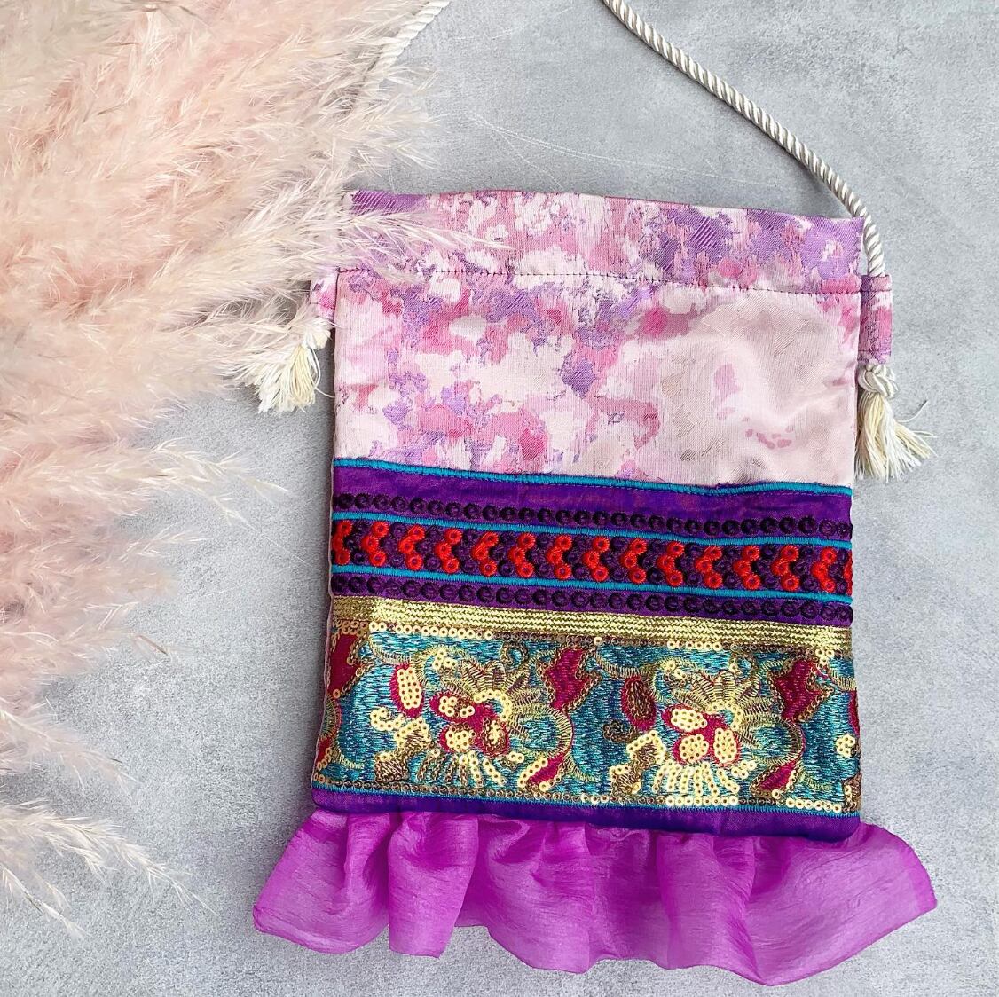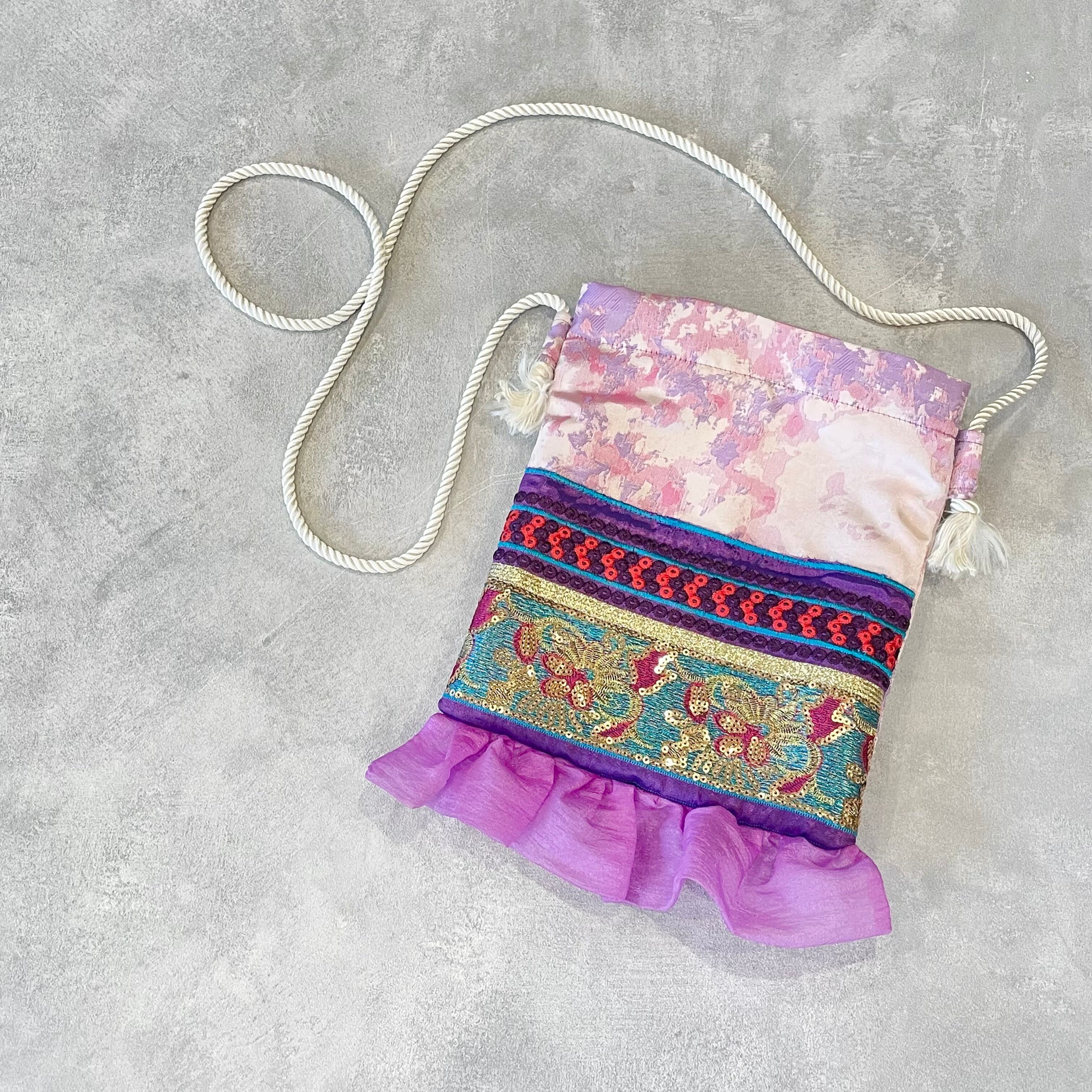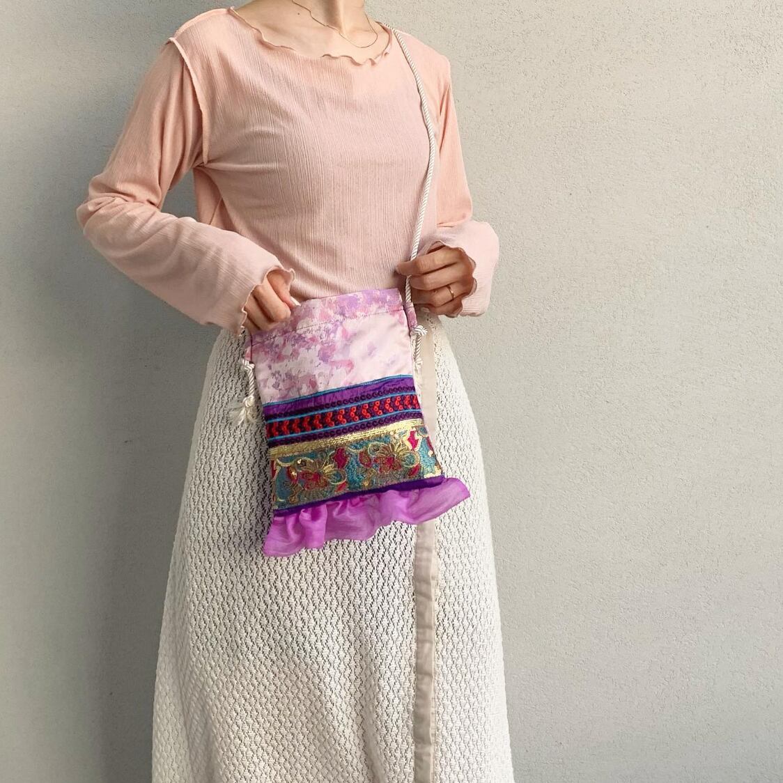 テープをふんだんに使ったお洒落なポシェットです。